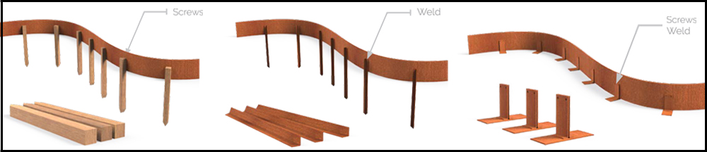 Edging, anchored to Edging Posts driven or concreted into the ground by screws or spot welding, is relatively easy for you or your landscape professional to install. For installation in a garden with limited footfall, choose 2mm thickness Garden Edging. For areas with a high footfall, for soil with heavy rocks and commercial application, we advise using 3mm thickness Garden Edging.