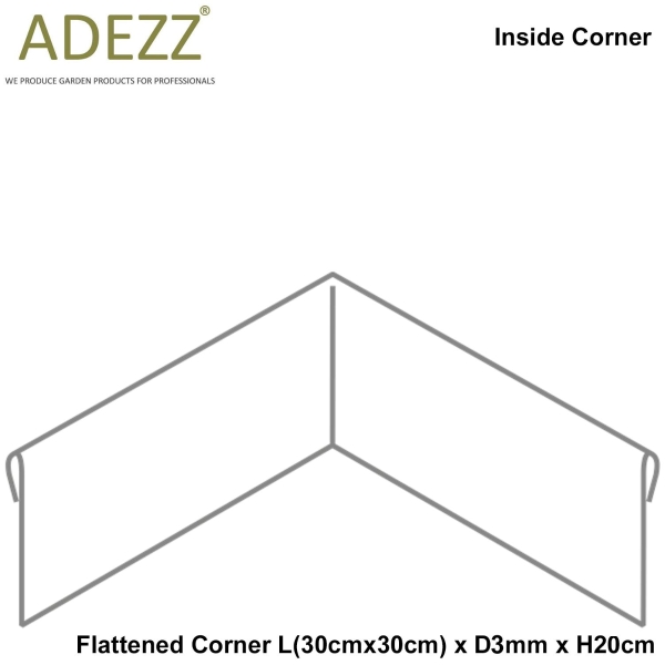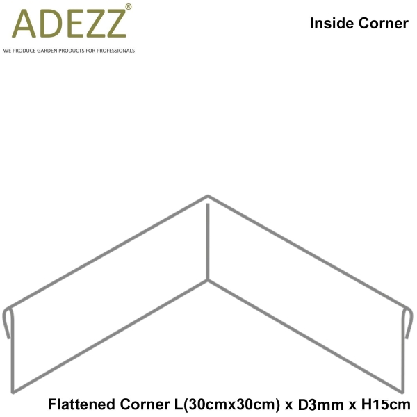 2/3mm FLATTENED CORNER L(30cmx30cm) Galvanized Steel Edging (5 sizes) : Inside Corner: L(30cm x 30cm) x D3mm x H39cm: No