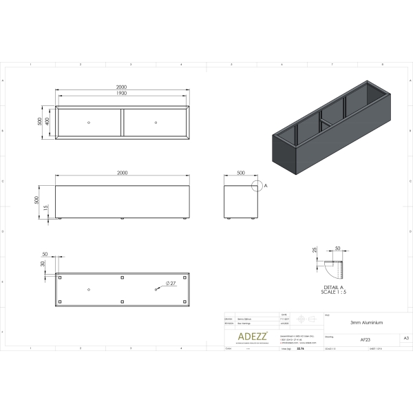The standard thickness of ADEZZ Aluminium Planters is 3mm.