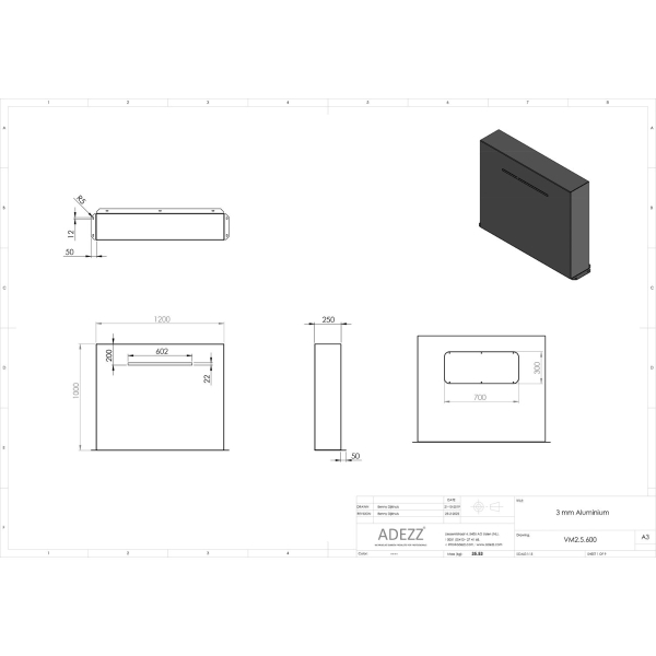 Fabricated from 3mm Aluminium