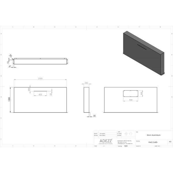 CAD VM2.2.1500 | L250cm x W25cm x H60cm + 150cm Waterblade