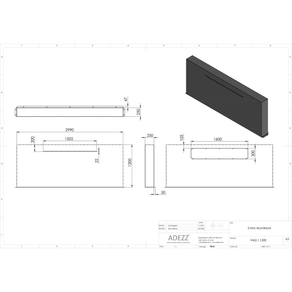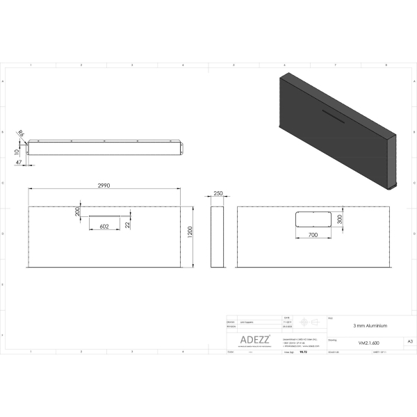 CAD VM2.1.1500 | L300cm x W25cm x H60cm + 150cm Waterblade