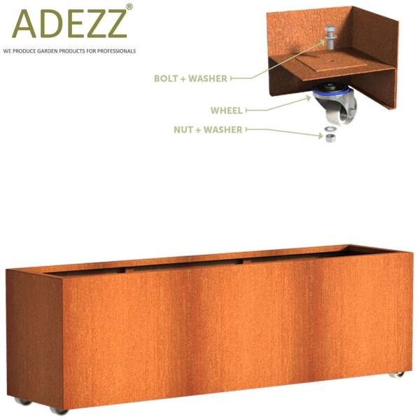 ADEZZ Corten Steel CARREZ Trough with Wheels (8 sizes).