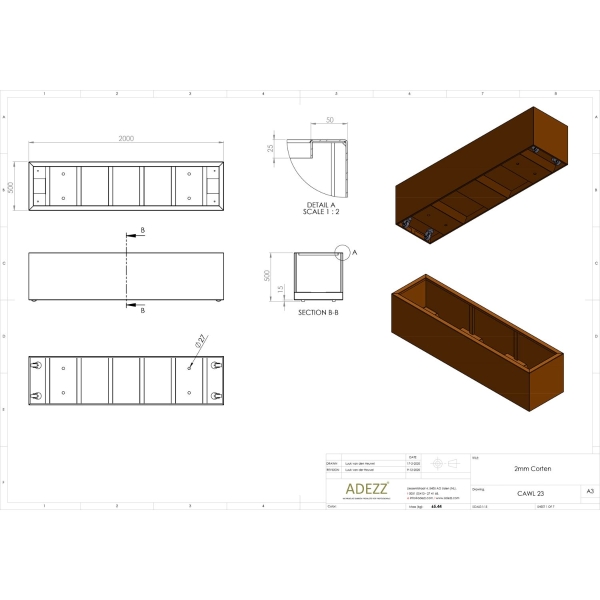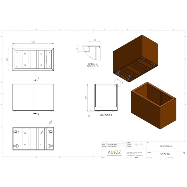 Fabricated from 2mm Corten Steel category A type S355JOWP