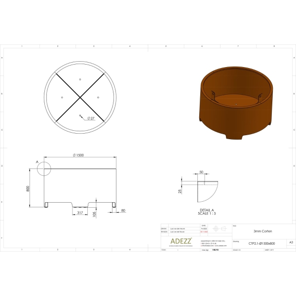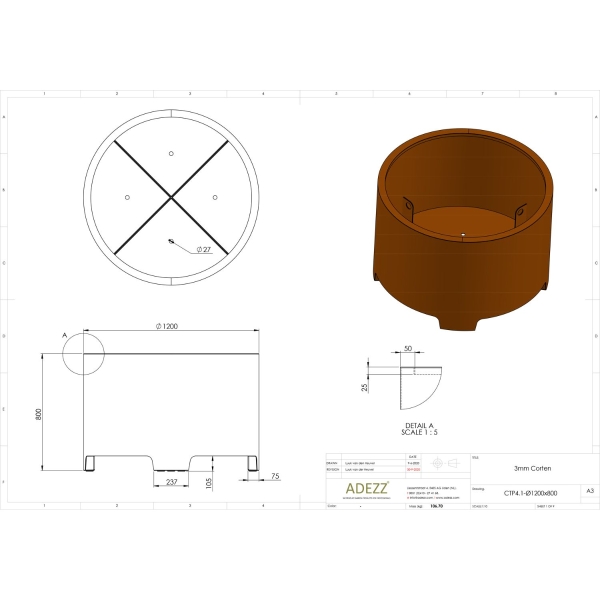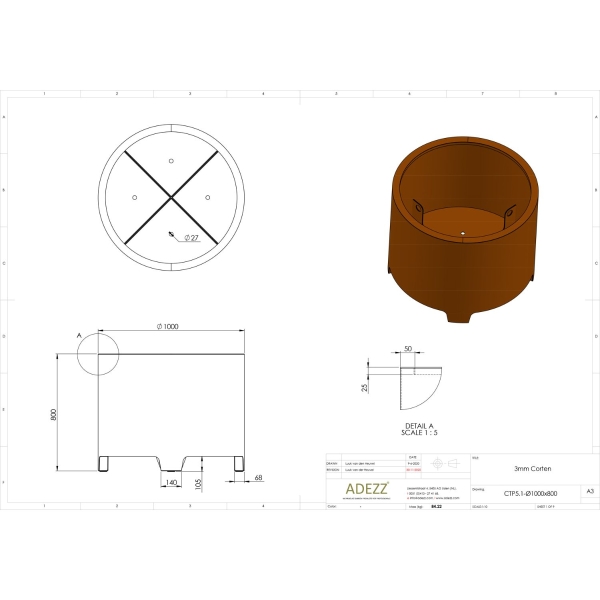 Fabricated from 3mm Corten Steel category A type S355JOWP