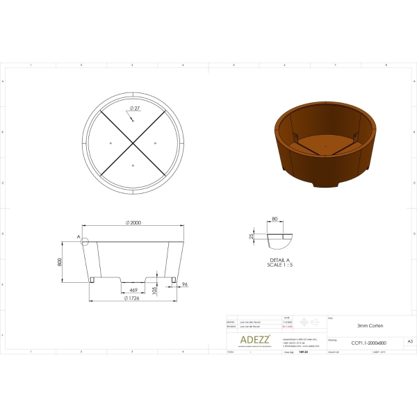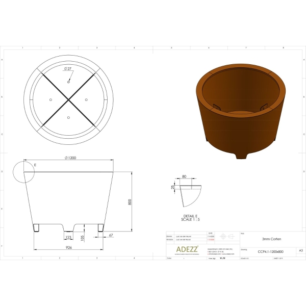 Fabricated from 3mm Corten Steel category A type S355JOWP