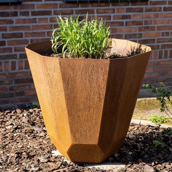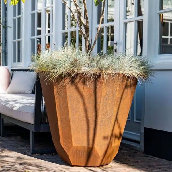Once exposed to the elements, the ADEZZ Corten Steel FACET Planter will weather and develop a protective layer of rust, revered by landscapers for its natural appearance.