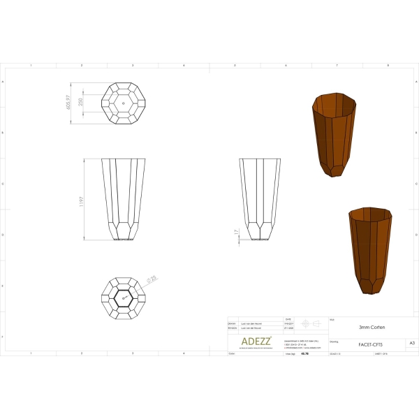 ADEZZ Corten Steel FACET Planter (5 sizes).