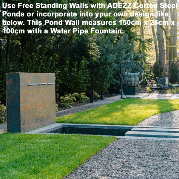 ADEZZ Free Standing Corten Steel Pond Walls and Fountains up to 300cm are available to order online; bespoke sizes are available on request.