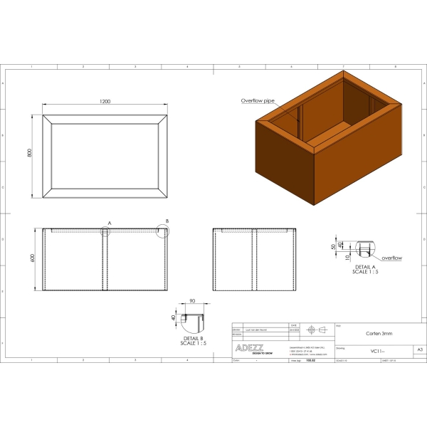 - Manufactured in Europe using 3mm thickness Corten Steel
