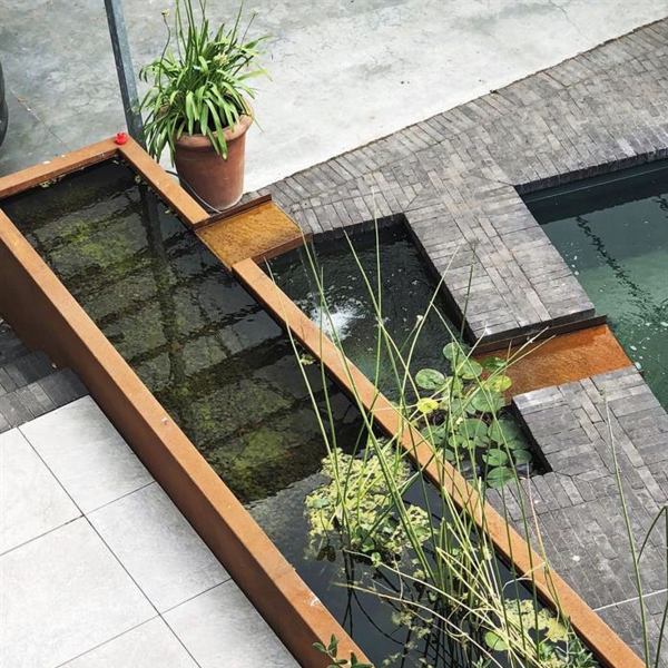 Order Waterfalls with the Corten Steel Walls. Waterfalls are available with an outflow of 50mm and 150mm. More information is available on the ADEZZ Corten Steel Pond Walls product page.