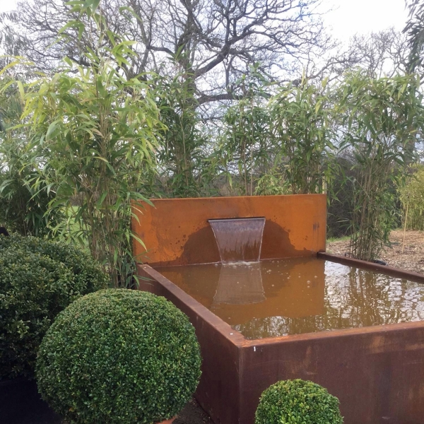 Place Freestanding Corten Steel Walls behind the pond. Freestanding Aluminium Walls can be the same length or depth as the pond, they can be more comprehensive, or they can be narrower. Position Freestanding Corten Steel Walls in a central position or position off-centre.