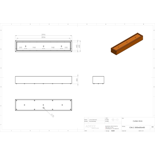 Fabricated from 3mm Corten Steel category A type S355JOWP