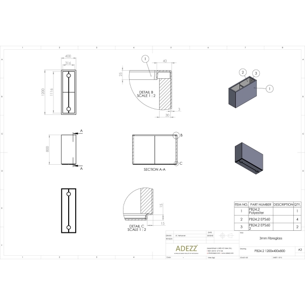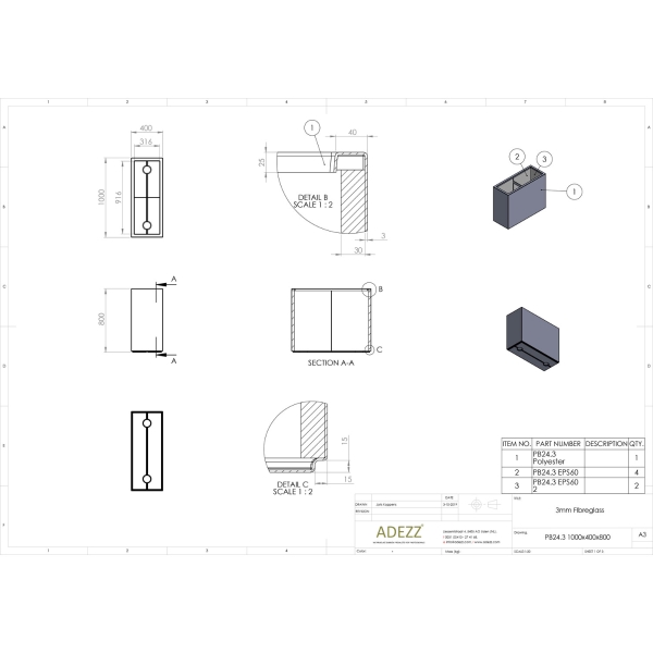 CAD PB24.3 | L100cm x W40cm x H80cm
