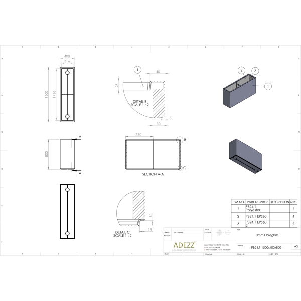 CAD PB24.1 | L150cm x W40cm x H80cm