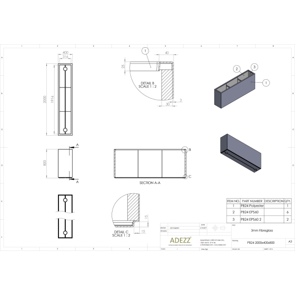 Fabricated from high-quality reinforced 3mm Fibreglass