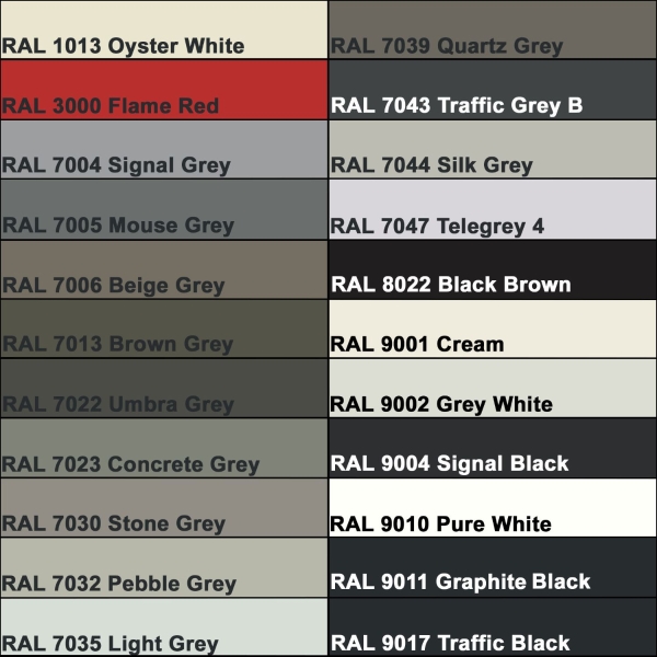 - 4 Standard and 22 Non-Standard RAL Colours available