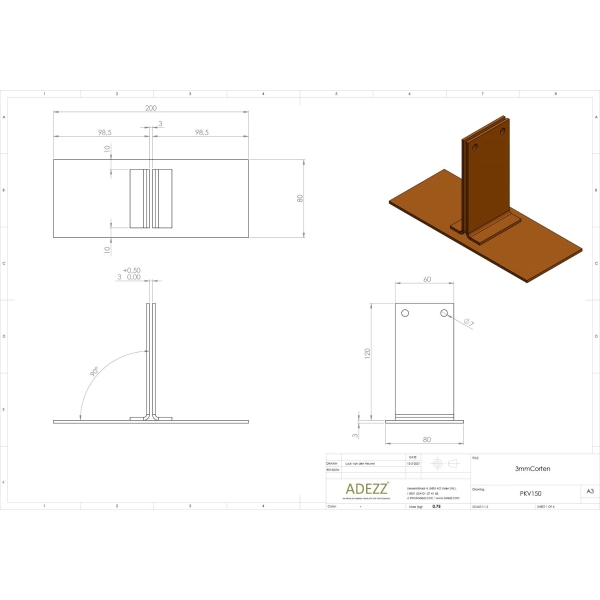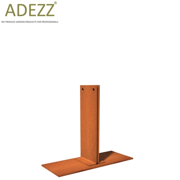 The footprint of Corten Steel Roof Supports measures 20cm x 8cm. Supports are available in three sizes, 8cm, 12cm and 17cm high.