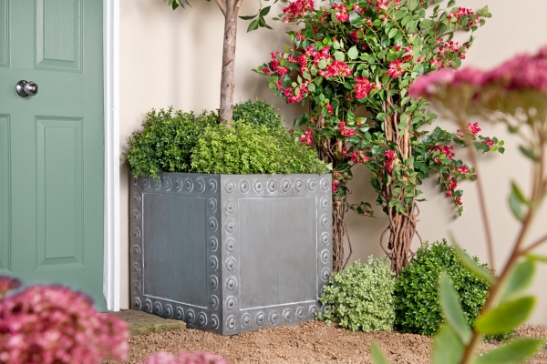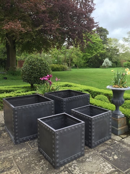 A rivet design that features around the edges adds interest to the Fibreglass Cromwell Faux Lead Planter that is now available to buy online in 4 different sizes plus a large garden trough including the extra-large 91cm square that offers a vast planting capacity.