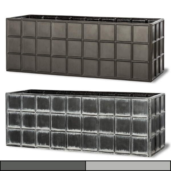 The Downing Street Trough is a reproduction of a 17th-century plant pot that still sits in the garden of Number 10 Downing Street. The prominent linear pattern adds formality to the design, more so in the solid faux lead finish.