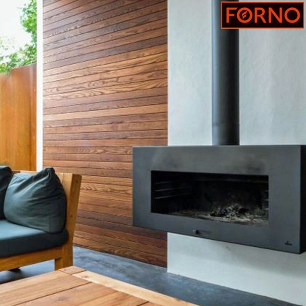 FORNO Coated Mounted Enok Wood Burner L100cm x D50cm x H50cm: Yes please: 100cm Flue + 90° Ending