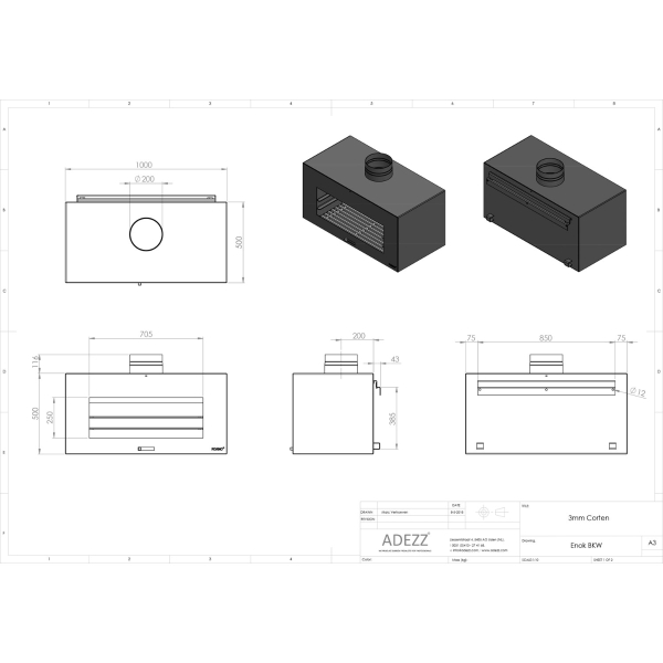 Mount the Enok Wood Burner, offered with an optional door, flue and chimney using the brackets fabricated at the rear (see CAD Drawings).