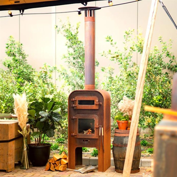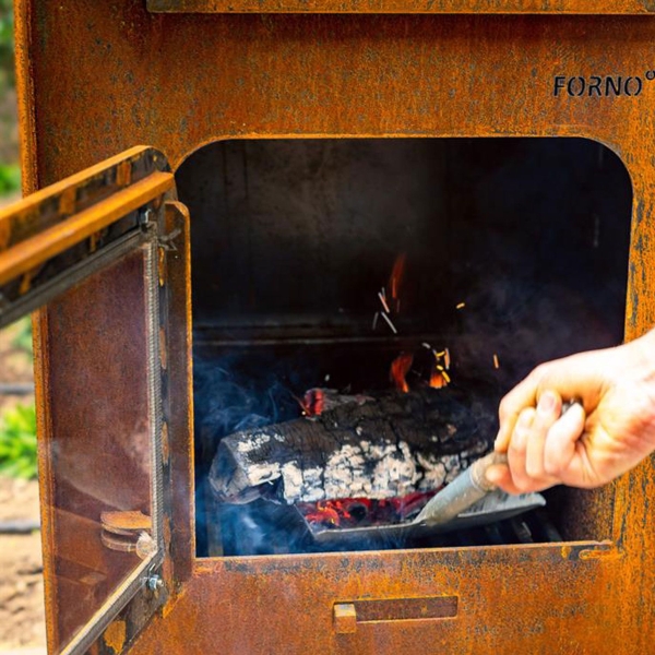 Fabricated from 3mm thick (6mm at the front!) Category A Corten Steel, the best-selling FORNO Corten Steel Free Standing GAP Wood Burner with Door and Pizza Oven will enhance any outdoor space. When lit, this uncomplicated well made and powerful burner looks stunning—the roaring fire giving off heat against an industrial-like backdrop offers warmth all year round.