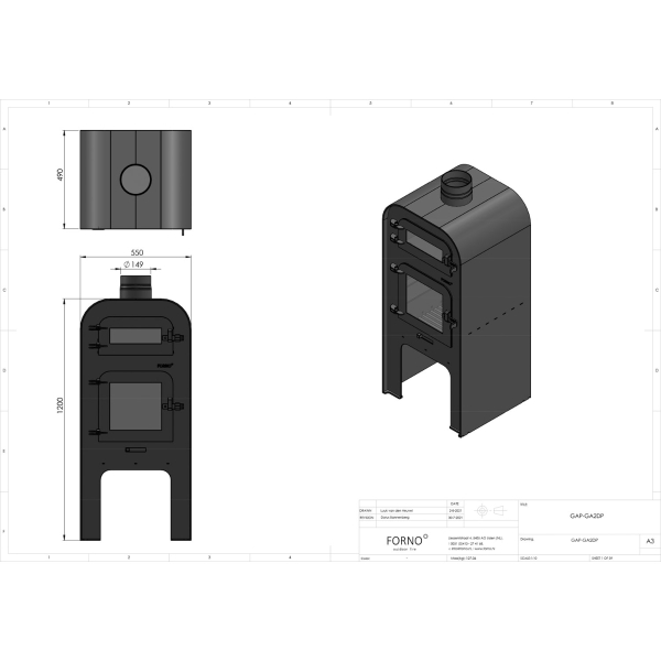 CAD GA2DP.150 + Door + Pizzastone | L55cm x W49cm x H120cm