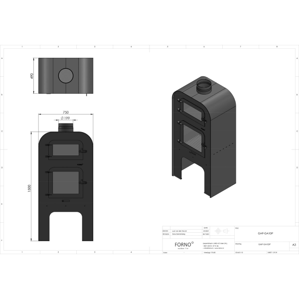 CAD GA1DP.200 + Door + Pizzastone | L75cm x W50cm x H150cm
