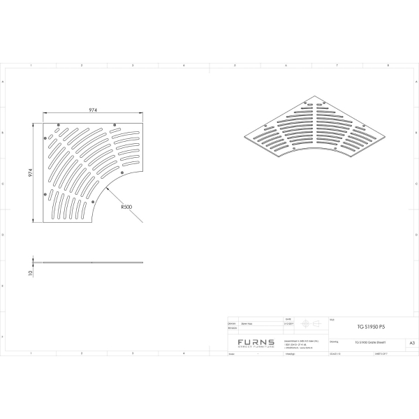 FURNS Corten Steel Radial Tree Grate L120cm x D120cm x H1cm CAD