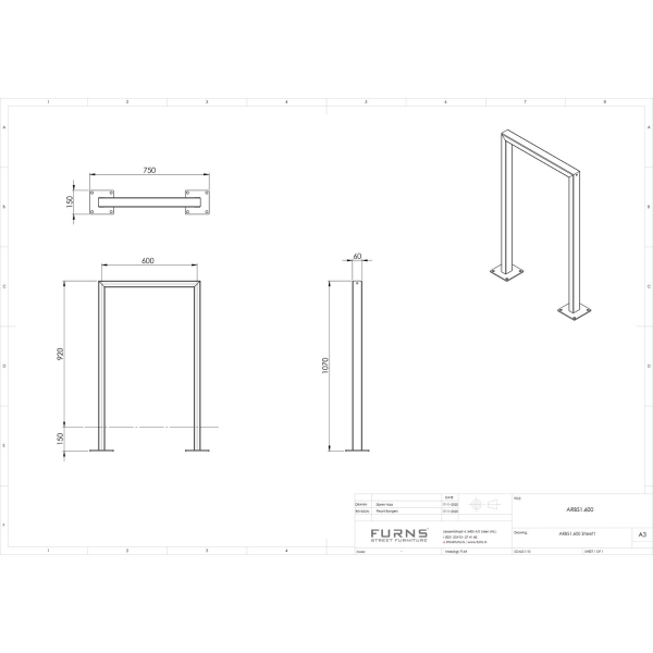 FURNS Galvanized Steel AROS 1 Bicycle Stand L75cm x D15cm x H107cm CAD