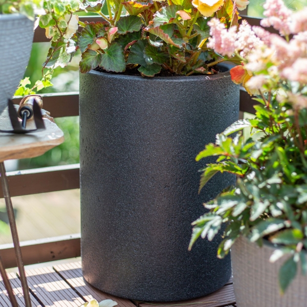 Lightweight Black Beton Tall Round Planter (2 sizes): D29cm x H40cm