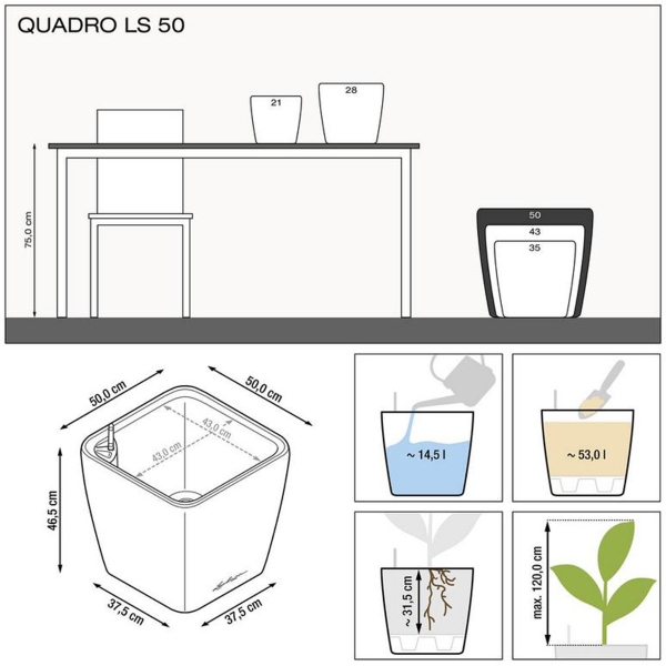 All self-watering planters are Manufactured in Germany by Lechuza using GRP (Glass Reinforced Plastic).