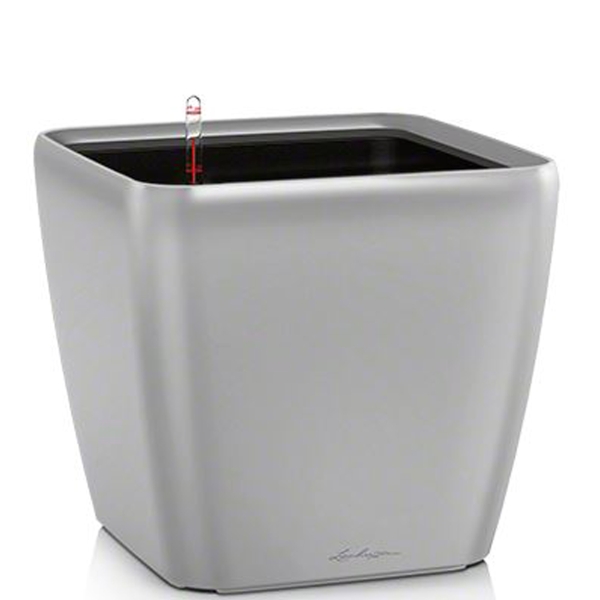 The metalic Silver Quadro Planter is a stylish self-watering square container that is suitable for both indoor and outdoor use. It is an exceptionally high-quality planter that is lightweight, durable, UV and frost resistant and available in two different sizes.