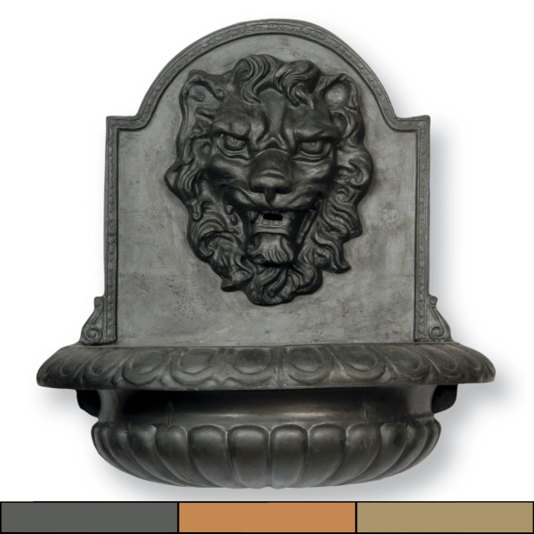 Available in the faux lead (main image), terracotta and bronzage finish the impressive Great Lion Bowl Fibreglass Wall Fountain, owing to its scale and imposing design, makes for a stunning focal point in any interior or exterior setting.