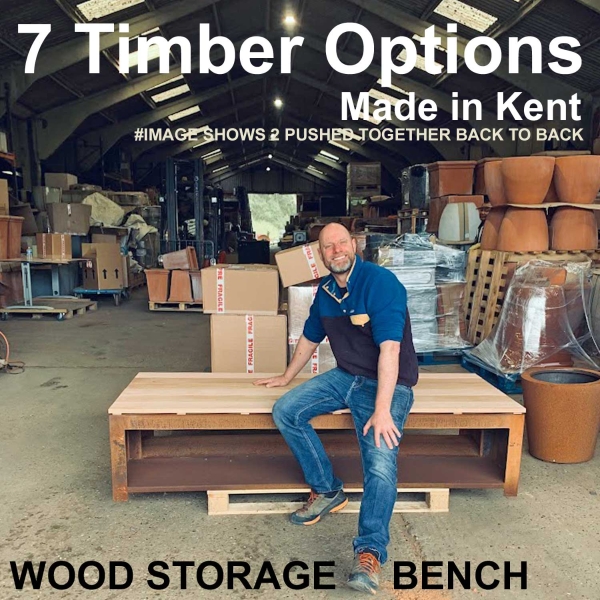 UK Made VALUE Corten Steel Wood Storage Bench L200cm x D40cm x H34cm: Cedar